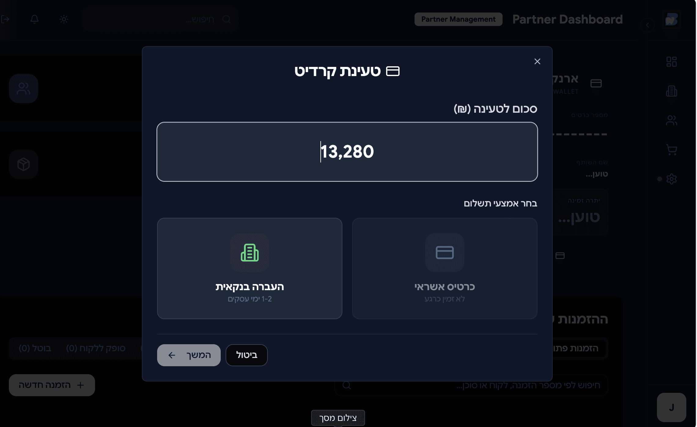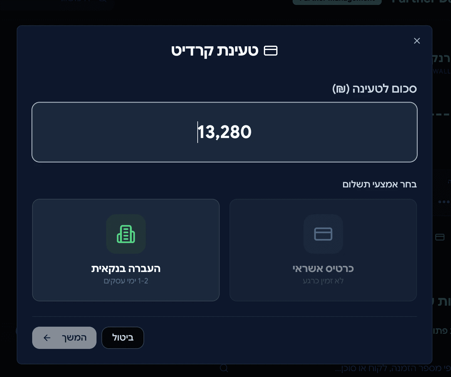 ארנק דיגיטלי המאפשר לטעון קרדיט מראש באמצעות כרטיס אשראי או העברה בנקאית,